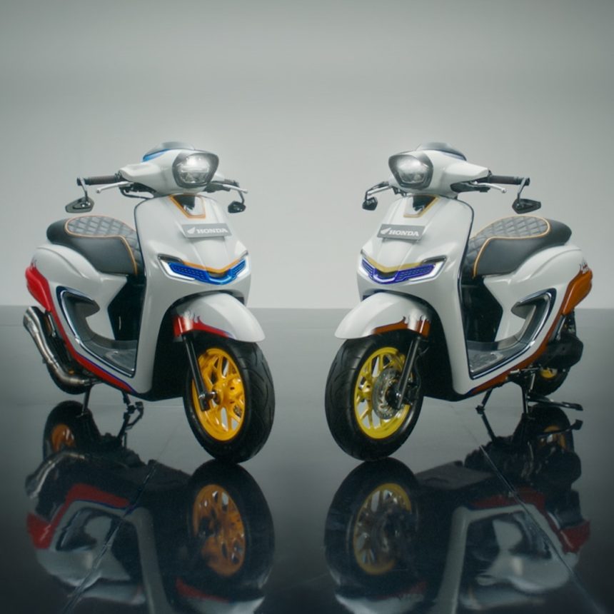 Honda Stylo 160 sangat cocok untuk konsep ini karena desain dasarnya sudah memiliki karakter klasik modern yang kuat. Garis bodi yang halus, lampu bulat LED, serta finishing premium memberikan dasar yang sangat baik untuk modifikasi ringan hingga menengah.